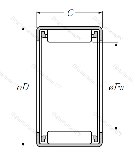 Игольчатый подшипник 7E-HMK 2230 имеет неразъемную конструкцию, в которую входят игольчатого вида тела качения и наружная штампованная шина. Как правило, является однорядным, без каналов для подачи смазочного материала.