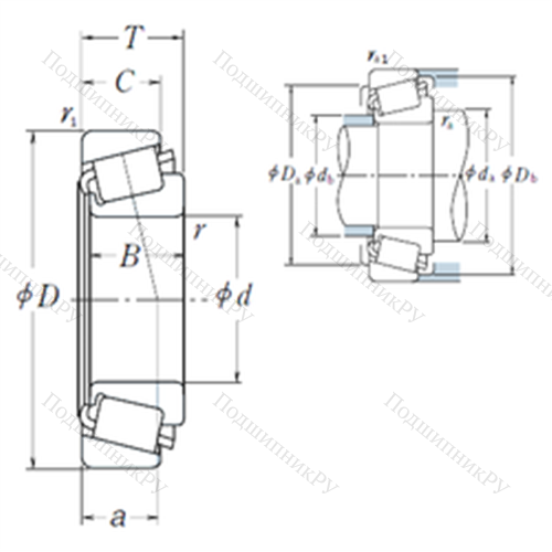 Подшипник роликовый радиально-упорный 25577/25521 у которого конструкционной особенностью являются ролики в форме конуса и разъемный корпус. Изделие также может быть укомплектовано наружным кольцом с упорным бортиком или большим углом, двухрядными или четырехрядными роликоподшипниками, утолщенной внешней шиной.