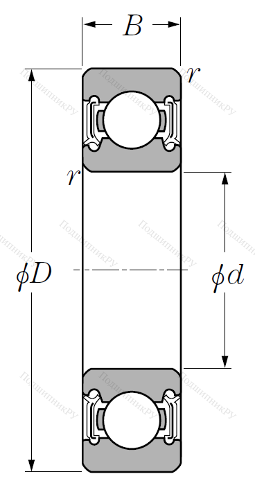 Однорядный шариковый подшипник 6201 LLU C 3