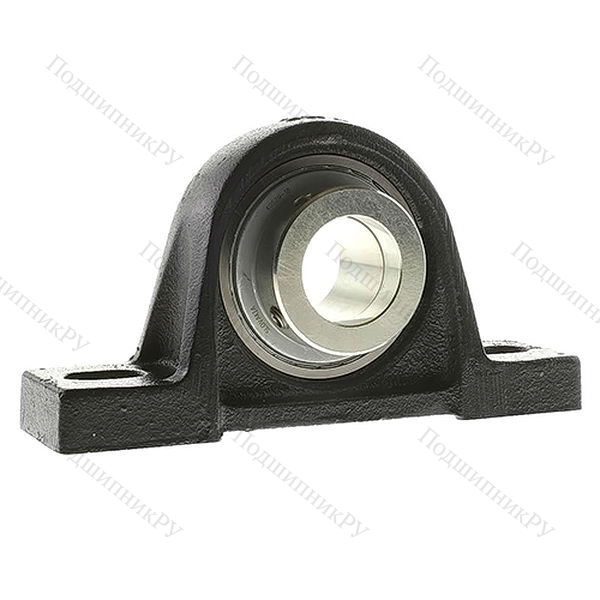 В конструкцию детали входит корпусный подшипник типа UC, установленный в корпус типа Р из чугуна с нишей сферической формы. Монтаж на вал осуществляется посредству кольца, оснащенного парой штифтов, закручиваемых шестигранником, что обеспечивает самовыравнивание.
